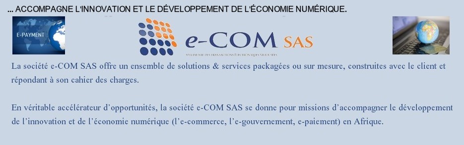 En véritable accélérateur d’opportunité, la société e-COM SAS se donne pour mission d’accompagner le développement de l’innovation et de l’économie numérique en Afrique.